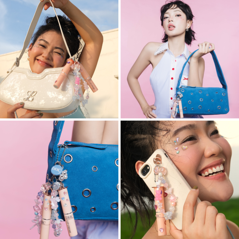 2024 chính là một năm của những chiếc túi treo đầy keychain, thể hiện tính cá nhân của mỗi người. Không ít cô nàng còn mix & match những thỏi son DHC Lip Cream với chuỗi hạt trong suốt để tạo thành một món phụ kiện treo túi xinh xắn, có tính ứng dụng cao.