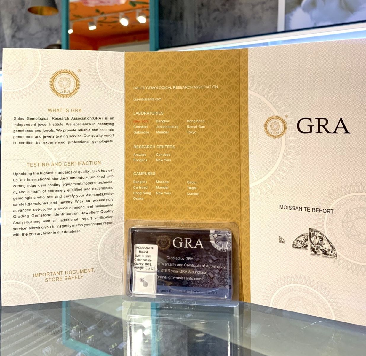 Chứng nhận đá Moissanite sẽ được cấp bởi nhà sản xuất hoặc người bán đá