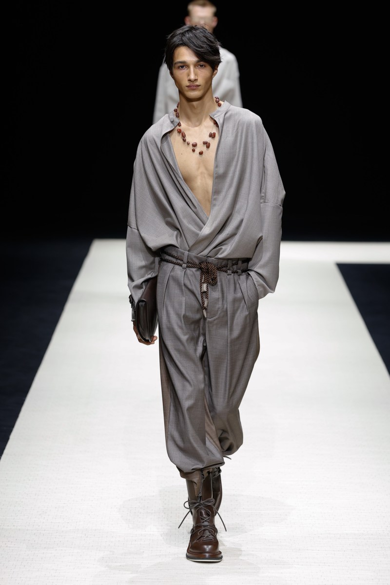 Phom dáng trang phục 2025 sẽ thiên về hai hướng: cứng cáp, đứng dáng hoặc tự do siêu thoải mái. Áo sơ mi không nhất thiết phải sơ vin, thậm chí có thể kết hợp với chiếc cà vạt siêu dài để tạo điểm nhấn độc đáo. Những bộ suit tôn vai, được may đo tỉ mỉ với gam màu trung tính như nâu và beige sẽ giúp quý ông trông vừa lịch lãm nhưng vẫn sành điệu.