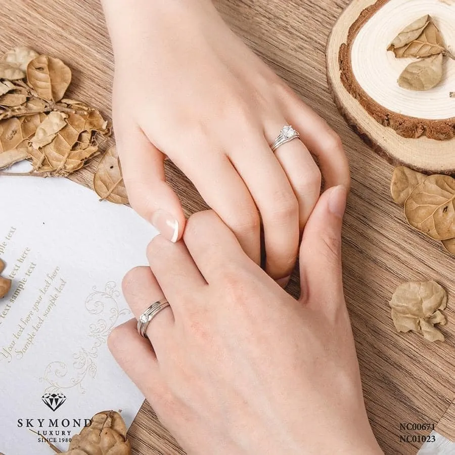 Dành cho những cặp đôi yêu thích sự mạnh mẽ, hiện đại. Dáng nhẫn vuông của Skymond được bo góc mềm mại, đảm bảo sự thoải mái khi đeo hàng ngày (Daily wear) nhưng vẫn cực kỳ nổi bật khi xuất hiện trong các bữa tiệc.