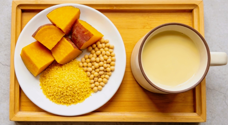 Khoai lang (135g): Chứa chất xơ hòa tan giúp nhuận tràng và bảo vệ niêm mạc dạ dày.