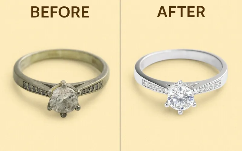 2. Vệ sinh gầm đá: Kem chống nắng thường bám vào gầm viên chủ, che khuất ánh sáng. Dùng bàn chải lông mềm và nước rửa chén pha loãng để chải nhẹ, giúp viên đá lấy lại độ tinh khiết thị giác vốn có.