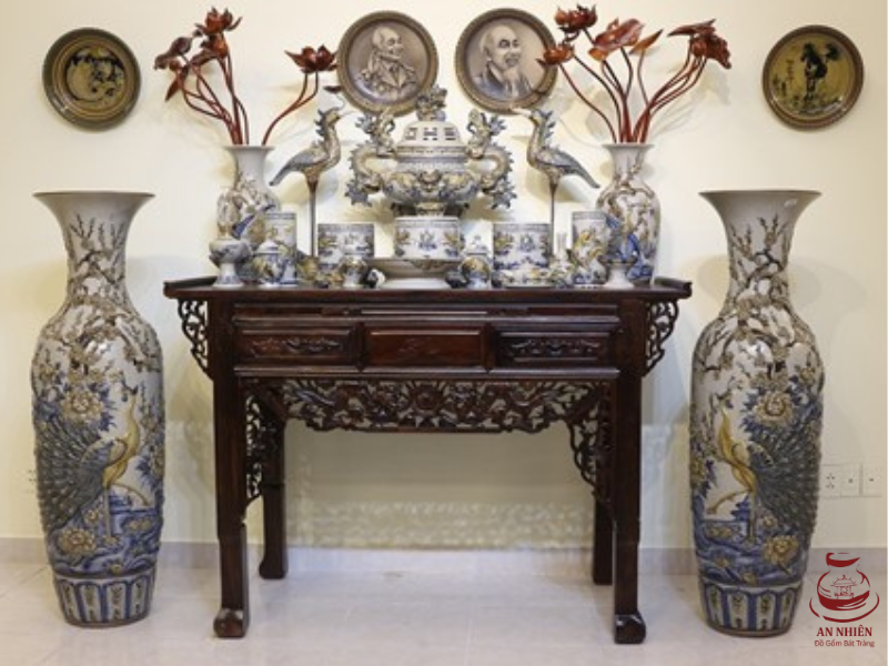 Cặp lộc bình men rạn dát vàng bên bàn thờ