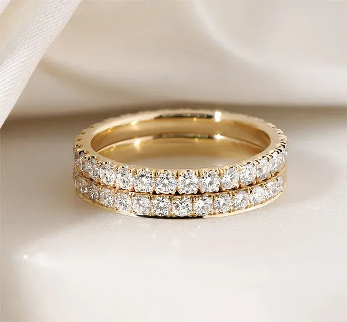 - Nhẫn cưới Eternity: Dòng nhẫn đính kim cương tấm toàn bộ vòng nhẫn, tượng trưng cho tình yêu không có hồi kết.
